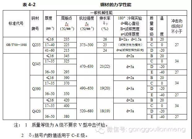 (2)伸長率比表4-2規定的數值低3%以內時容許使用,但不宜用于考慮塑性變形發展的構件。