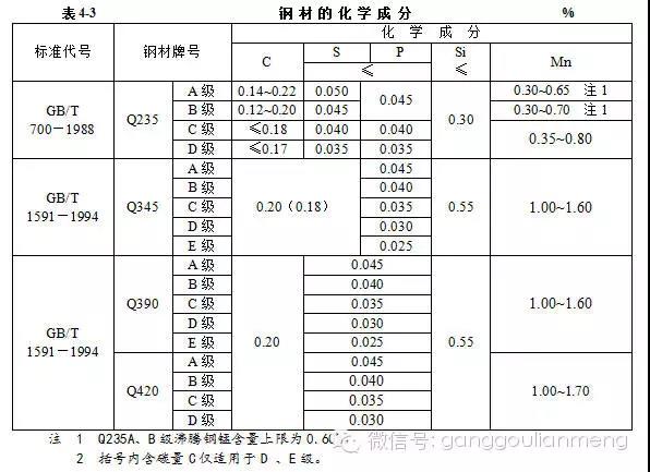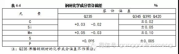 2. 鋼材的化學成分容許按表4—3與表4—4規定的標準有一定的偏差。
